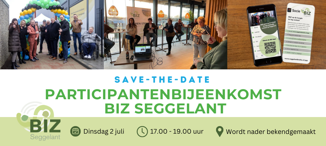 De BIZ zet zich in voor een schoon, heel, veilig en duurzaam bedrijventerrein. De BIZ is nu al een tijdje actief op Seggelant. We zijn met diverse projecten bezig en daarom informeren wij u graag op dinsdag 2 juli wat de plannen voor het bedrijventerrein zijn. Voor u tevens een mooi moment om ook uw mening te delen. Zien wij u dan?